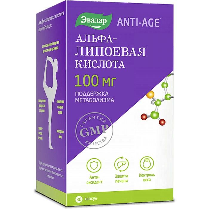 Дополнительный источник альфа - липоевой кислоты, ANTI-AGE линия, поддержка метаболизма, способствует антиоксидантной защите и детоксикации организма, замедлению процессов старения, защите клеток печени, контролю веса , снижению сахара в крови.