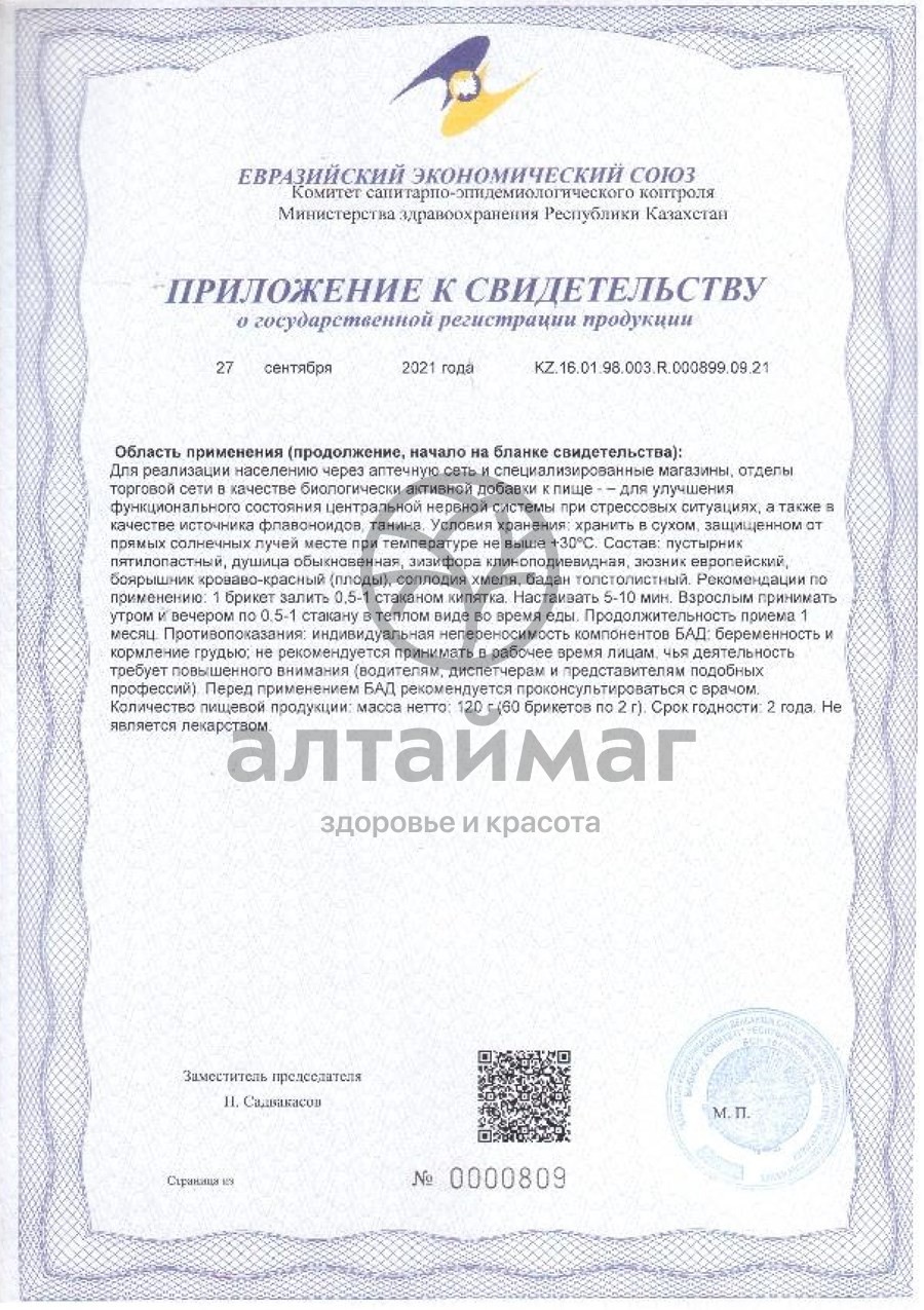 Пион, пустырник, душица хорошо известны и применяются в официальной медицине. Зюзник при экспериментальных исследованиях и клинических испытаниях показал седативный эффект в несколько раз превышающий эффект валерианы. Эфирное масло зизифоры синергично усиливает действие зюзника. Лист бадана обладает мягким иммуномодулирующим действием и улучшает вкусовые качества.