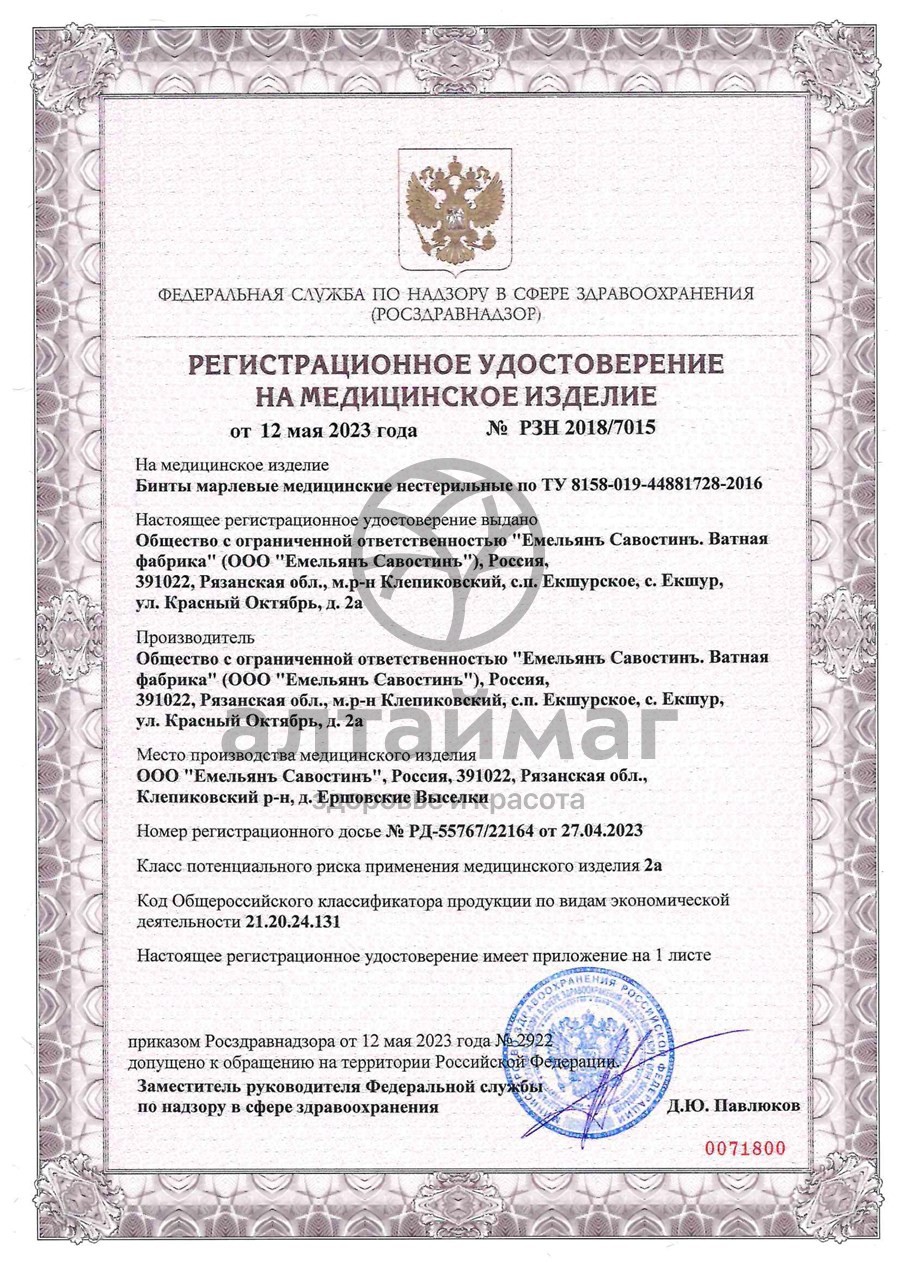 - Купите Бинт марлевый Емельянъ Савостинъ нестерильный 7x14см в Майкопе по доступной цене 45 ₽ с доставкой на дом или заберите Ваш заказ в Майкопе из ближайшего пункта выдачи, сделав заказ на AltaiMag.ru.