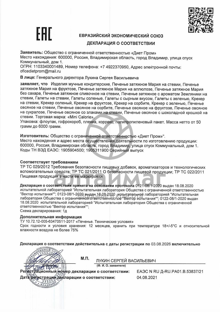 Есть вопросы по товару "Крекер Mini Calorie на стевии 200гр"?