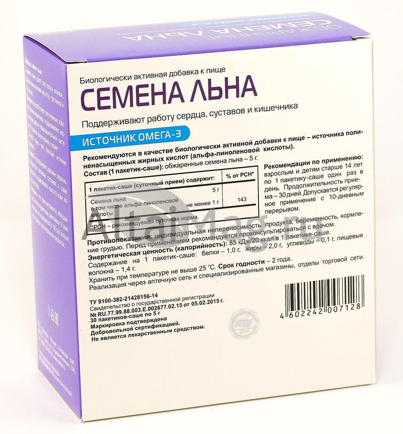 - Чтобы купить Льна семена 5г №30 саше совершите всего несколько шагов: укажите количество продукта и нажмите на кнопку «Купить».
