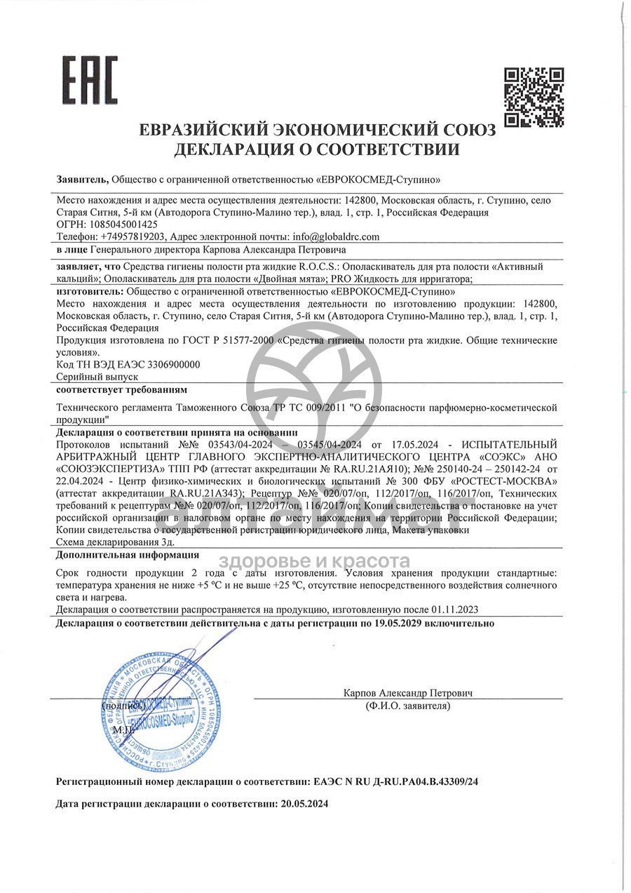 Есть вопросы по товару "R.O.C.S. PRO Жидкость для ирригатора"?