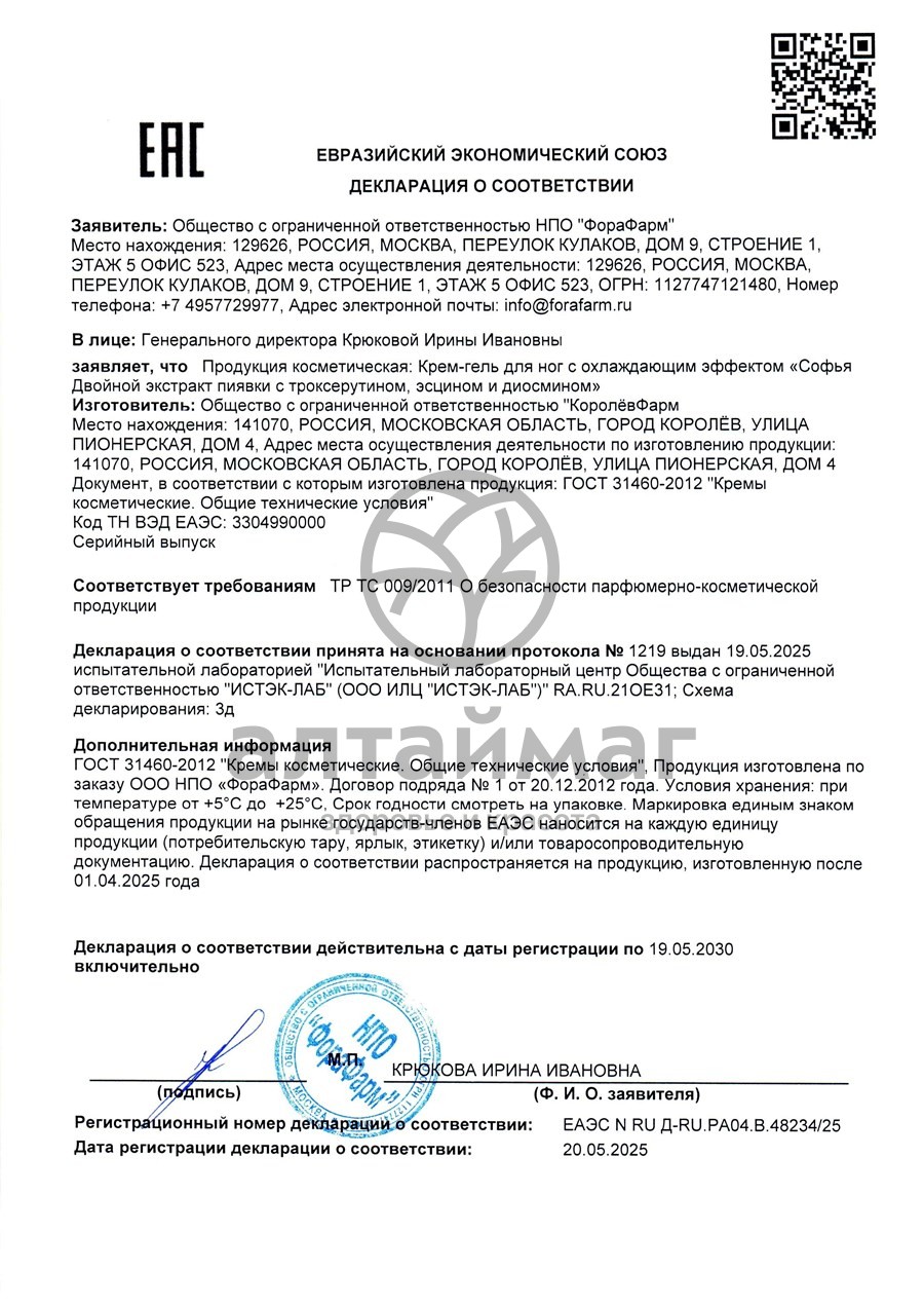 Есть вопросы по товару "Софья крем Экстракт Пиявки двойной для ног 125мл"?