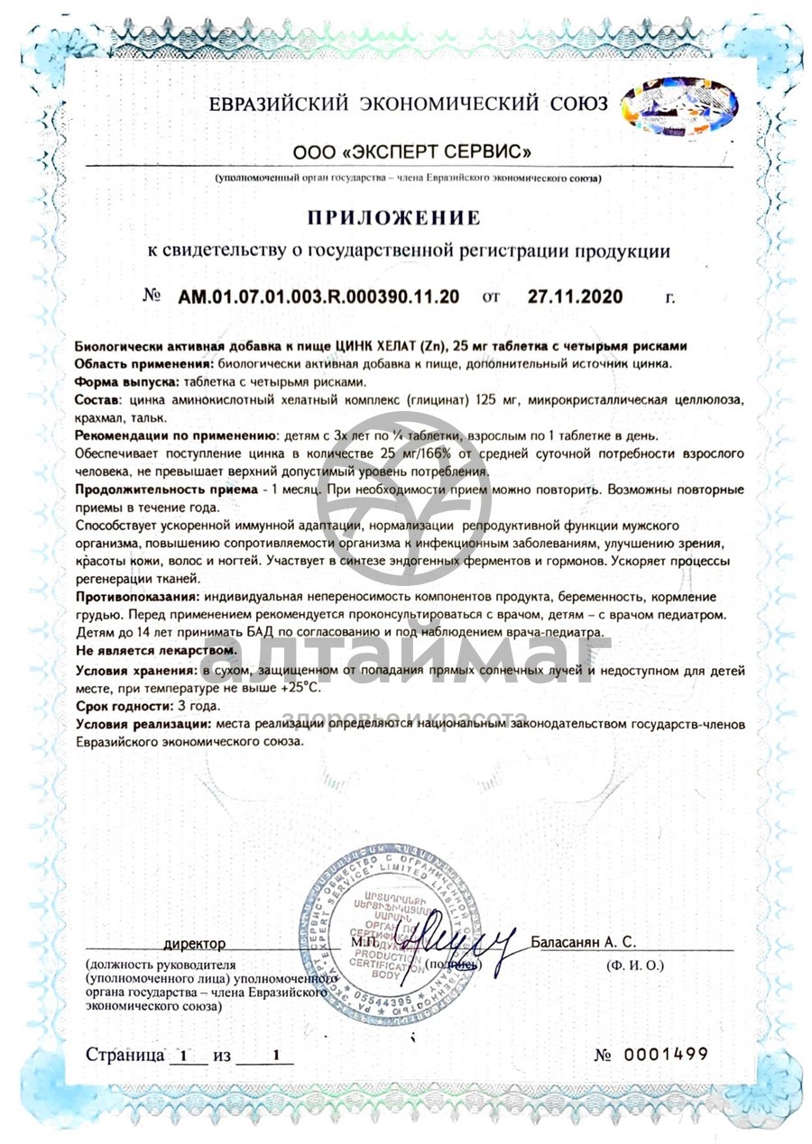 Есть вопросы по товару "Цинк хелат 25мг Мирролла №40"?