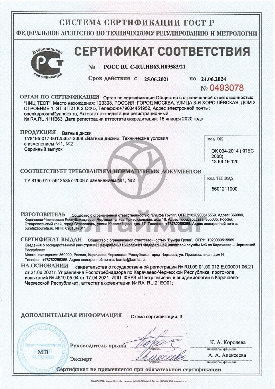 Ватные диски хранят при температуре не ниже -35°С и не выше +40°С в крытых сухих складских помещениях в упаковке изготовителя.